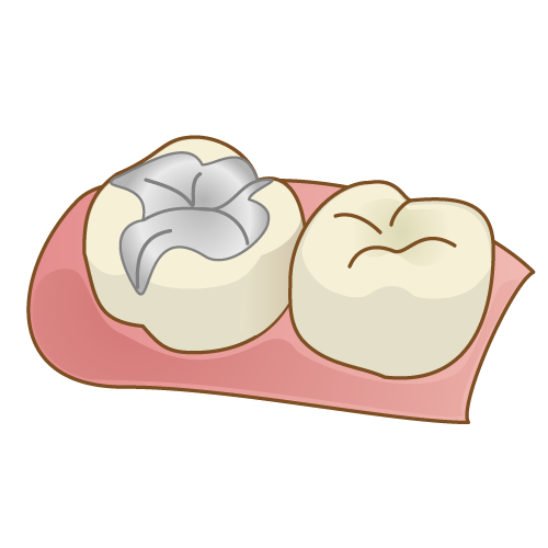 削った部分が少ない場合の治療法で、CR(コンポジットレジン)充填、メタルインレー、CAD/CAMインレー、CR(コンポジットレジン)インレー、セラミックインレーがあります。この中のCR充填は直接歯の中に材料を入れて、固める治療です。しかし、◯◯インレーという治療法は、印象採得という歯型を取る工程を経て、口の外で何日かの間に詰め物を作って、また患者さんに来院してもらって、出来上がった詰め物をつける方法です。